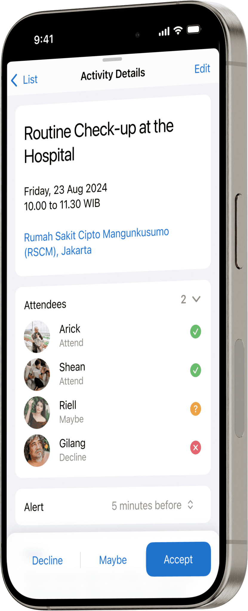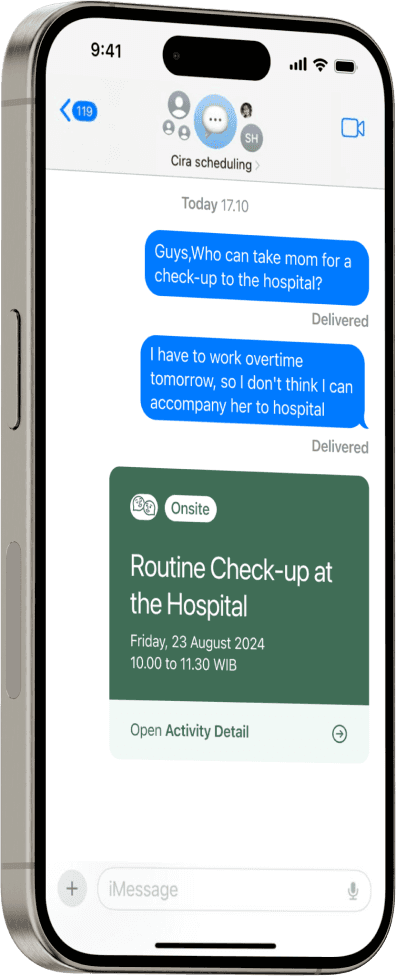 App for senior care coordination via iMessage with calendar sync and response tracking.