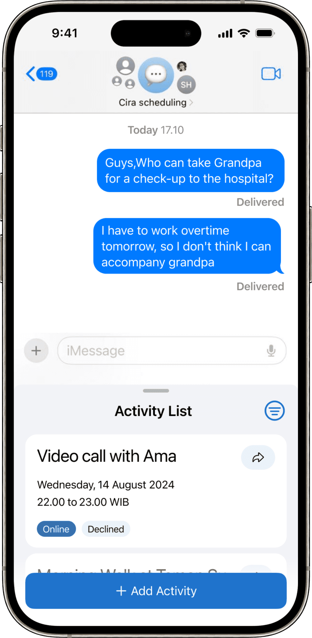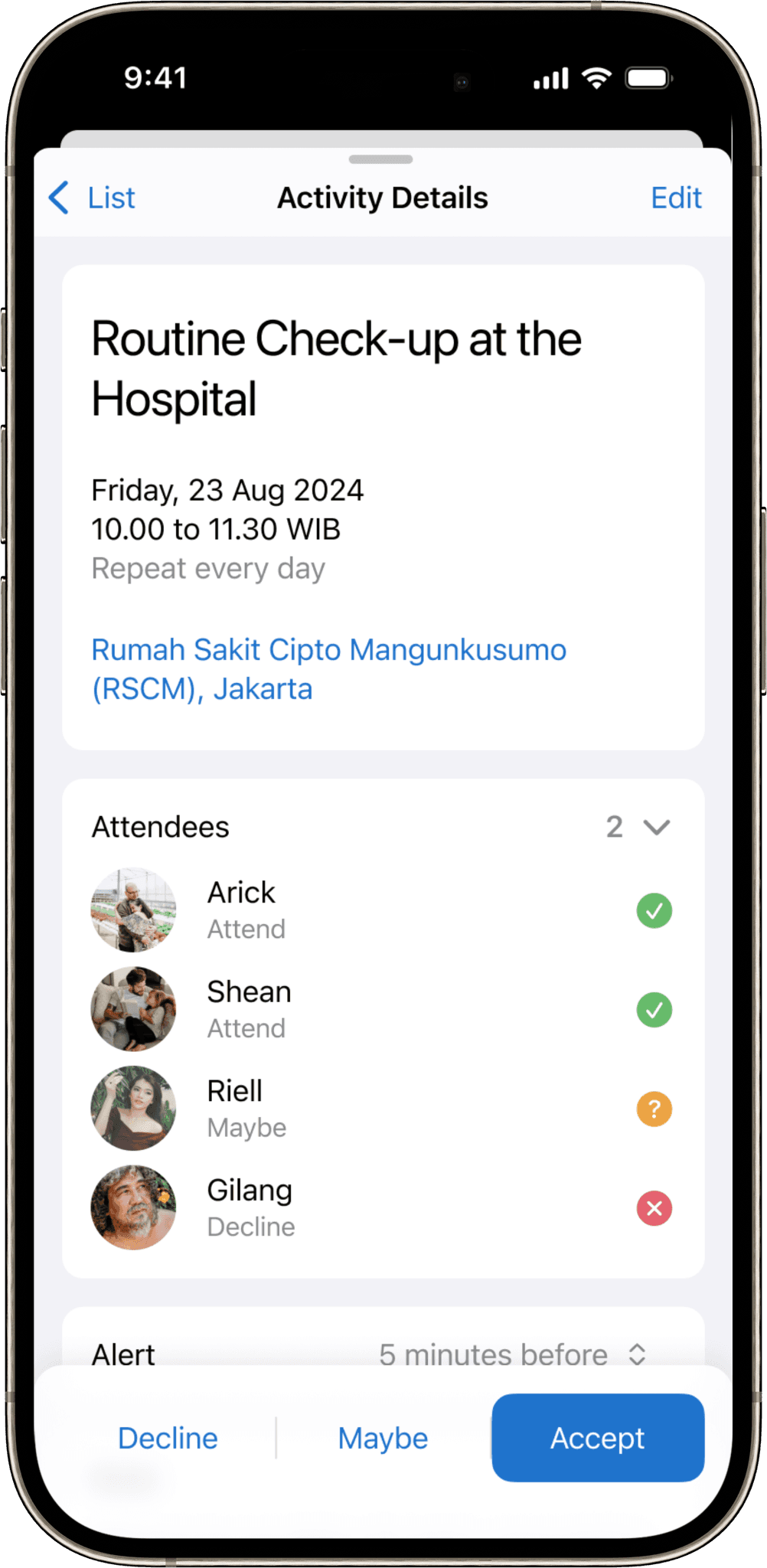 CIRA has a key feature, Care Scheduling and Coordination. Caregivers can send invitations to family members to help with senior care tasks. Family members can respond directly to the invitation whether they accept, maybe, or decline the invitation, providing clearer confirmation. Once they accept the invitation, it will automatically connect to their calendar and send a reminder for the event.