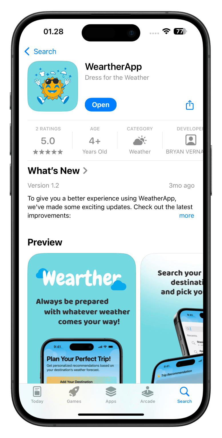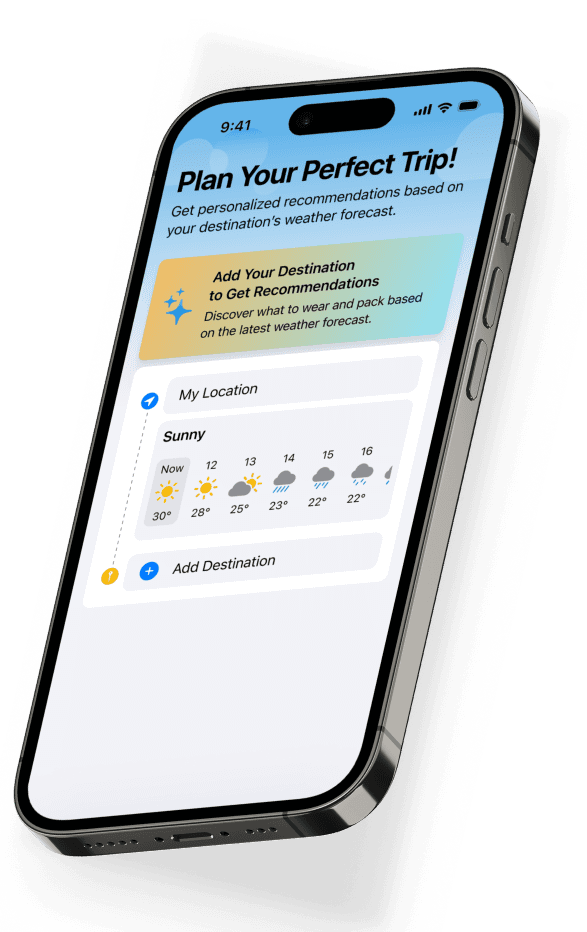 Wearther is an app that delivers real-time weather updates and personalized packing tips for your journey.